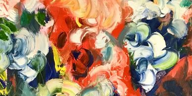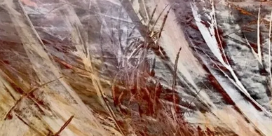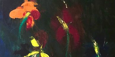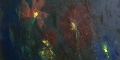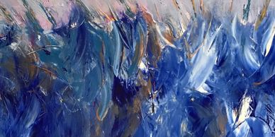 "Lea's use of color and brushstrokes evoke a sense of movement and mystery. She invites the viewer into a journey of the spirit."